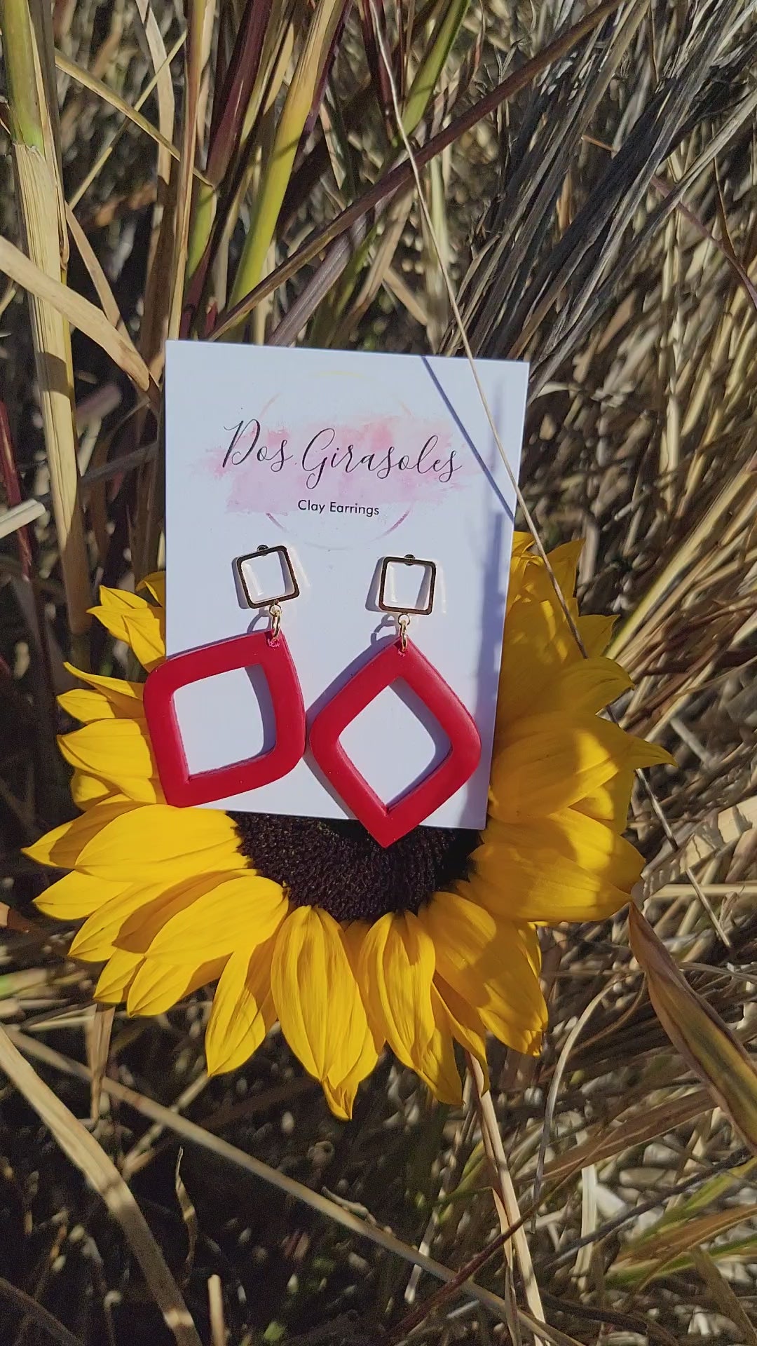 Gold plated square earring with red clay diamond shape. This earring is inspired by Maribel, Rubi's bestie. She had the biggest heart, even though they were like sisters Maribel was betrayed by Rubi in the worst way possible.