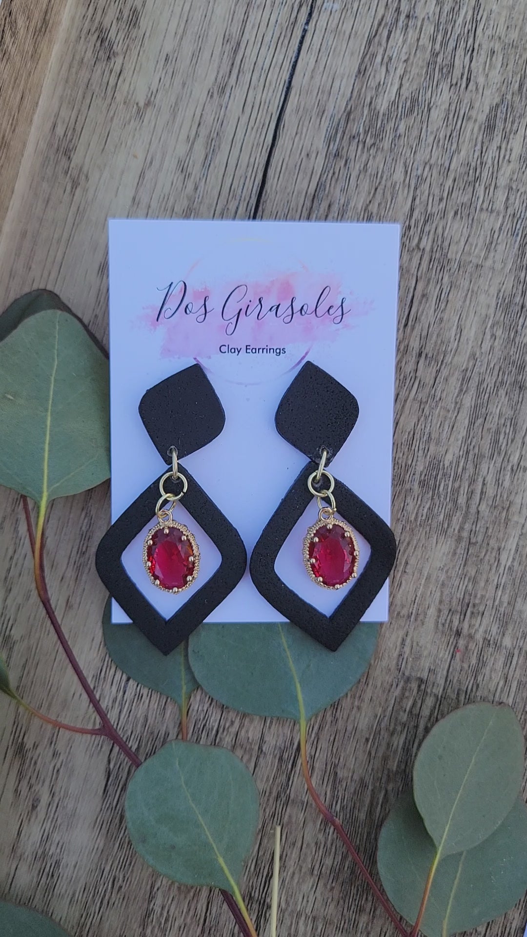 A beautiful pair of black earrings with a ruby colored stone to represent the iconic queen that was Rubi.